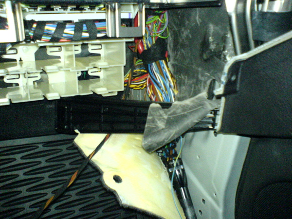 Next I installed the wiring adapter into the factory harness and connected the reverse & speed wires, installed then Traffic Pro GPS antenna (fits under the dash, see BMW instructions) and gently set the radio in place (not pushed in all the way).
