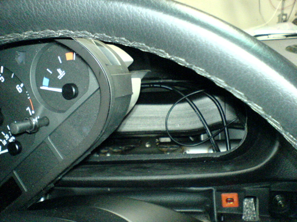 Next it was time to remove the speedometer cluster (easy, just 2 screws near the top, the assembly just pulls out) and find the black/white wire. To be sure it is the speed signal wire, you may want to use the Traffic Pro diagnostic menu. The BMW E46 installation instructions also tell you which connector and pin to use.