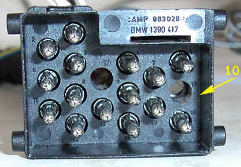 Here you can see the receptacle for the GAL pin (#10) on the auto harness(Yellow